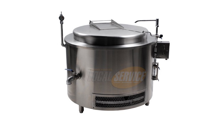 Veja os detalhes da caldeira industrial para cozinha Local Service: estilo americano, constituida de recipiente interno com fundo abaolado, executado em chapa de aço inoxidável AISI 304, liga 18.8 com espessura de 3,5 mm. Resistência, qualidade e segurança para uma peça tio importante como a caldeira industrial para cozinha.