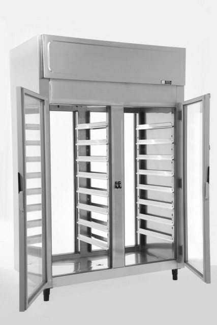 Já o pass through locação refrigerado vertical é dotado de corpo monobloco tipo duplo, revestimento externo em aço inoxidável e isolamento térmico em poliuretano injetado. Possui duas portas, uma de cada lado. Internamente 18 pares de cantoneiras em perfis âLâ para encaixe de recipientes GNs, portas tipo almofadadas com gaxetas para vedação com aba e imi, refrigeração através de conjunto frigorifico tipo hermético selado, 1/4 HP, 220 volts, evaporador com forçador de ar e termômetro digital. Além disso, tem modelo pri³prio para acondicionamento de recipientes gastronorm GNs 1/1, apoiado sobre rodizios.